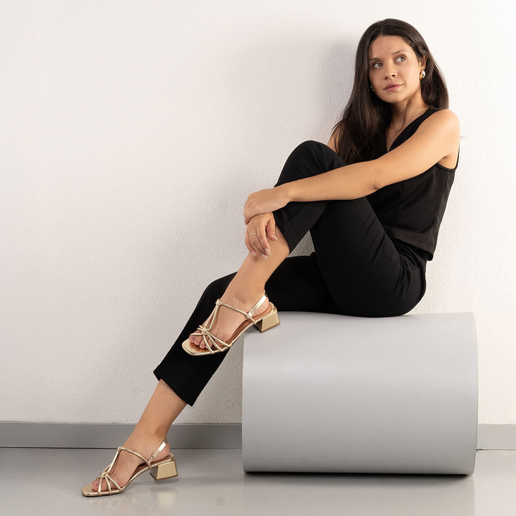 Sandalias de tacón bloque con tiras metalizadas para mujer - Beira Rio