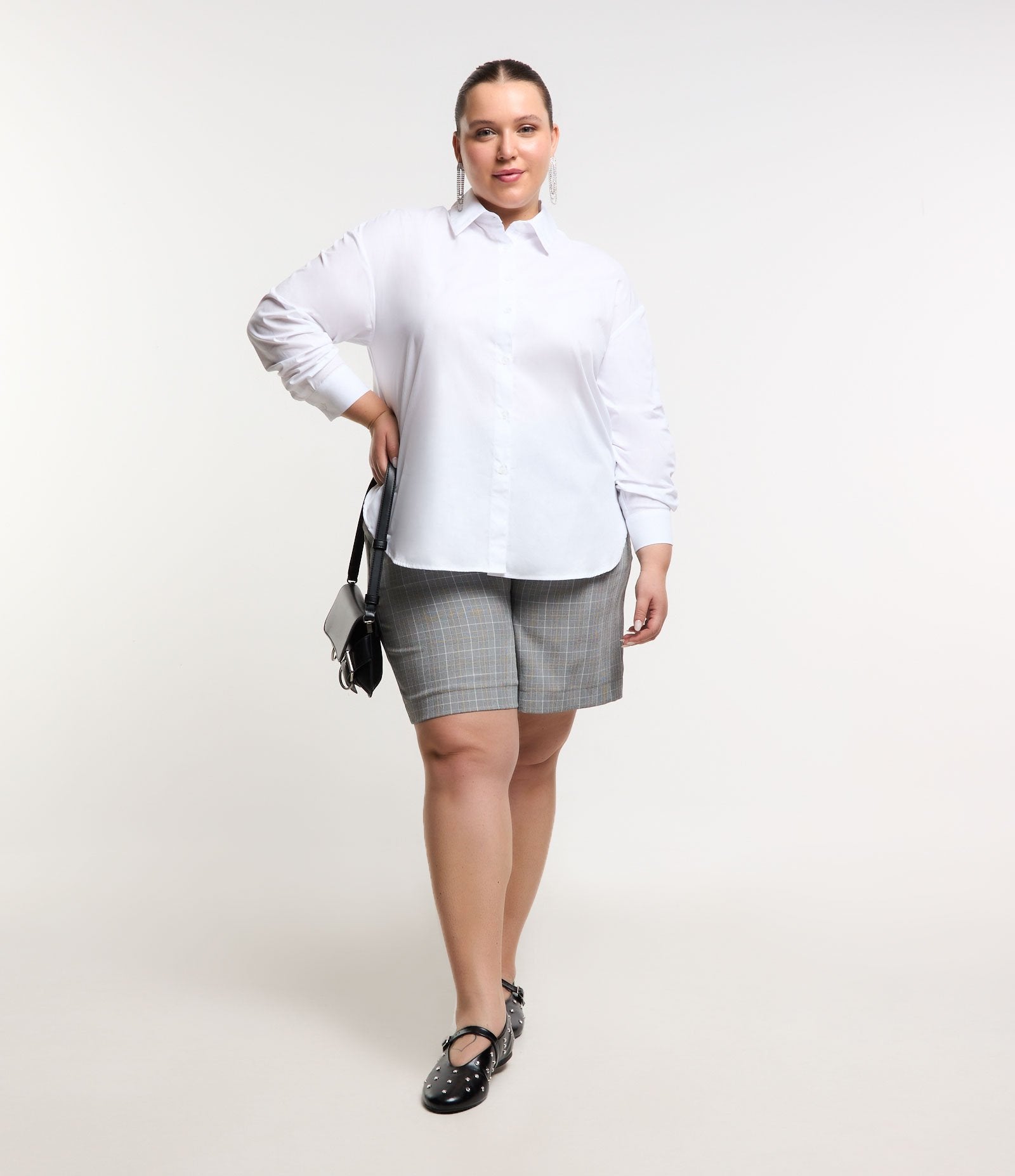 Bermuda sastre gris a cuadros con cintura elástica - Tallas grandes y curvas