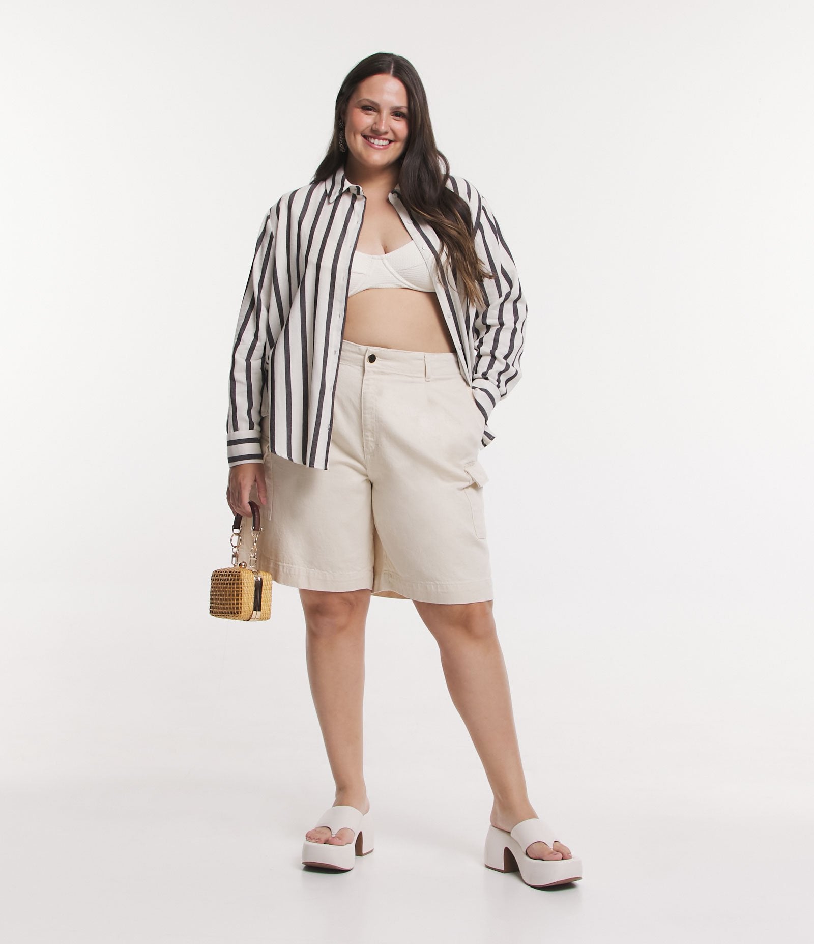 Bermuda larga de sarga con bolsillos laterales - Curvas y tallas grandes Blanco roto