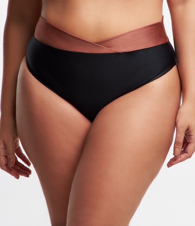 Braguita de bikini de talle alto en microfibra bicolor ligera con cintura cruzada - Tallas grandes y curvas Negro/Marrón cobrizo