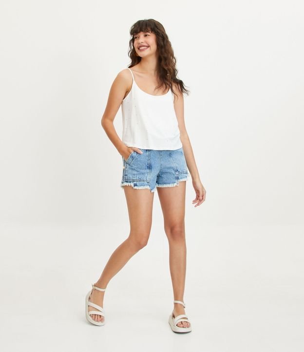 Pantalón Corto Vaquero con Bolsillo Carpintero y Cintura Elástica - Azul