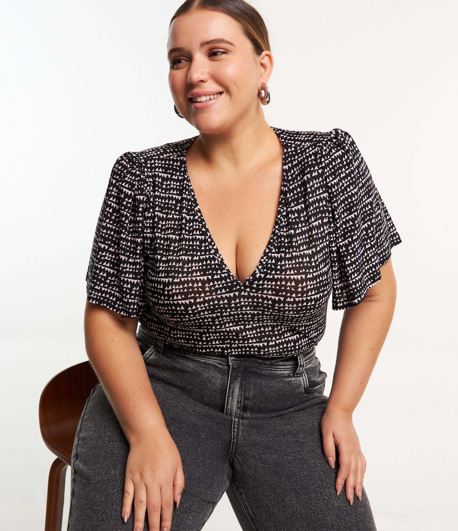 La Blusa de punto con estampado de triángulos y mangas abullonadas en Curve & Tallas grandes Negro/Blanco de Ashua Curve está confeccionada para celebrar las curvas con estilo y confianza. Ideal para cualquier ocasión, esta prenda combina a la perfección comodidad y elegancia en un diseño favorecedor.