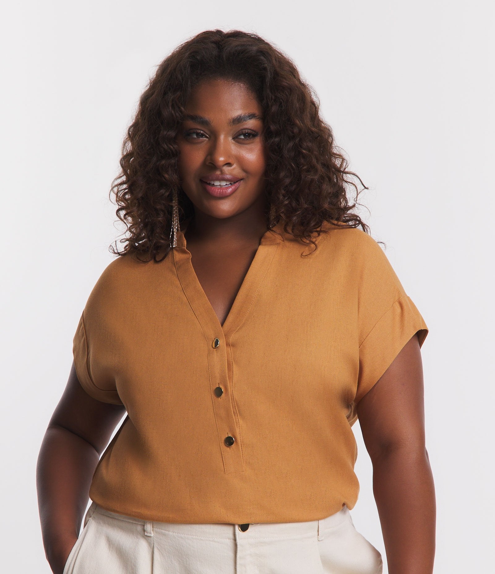 La Blusa Ashua Curve de Lino con Cuello en V y Botones en Curve & Tallas Grandes Amarillo está confeccionada para celebrar tus curvas con estilo y confianza. Ideal para cualquier ocasión, esta prenda combina a la perfección comodidad y elegancia en un diseño favorecedor.