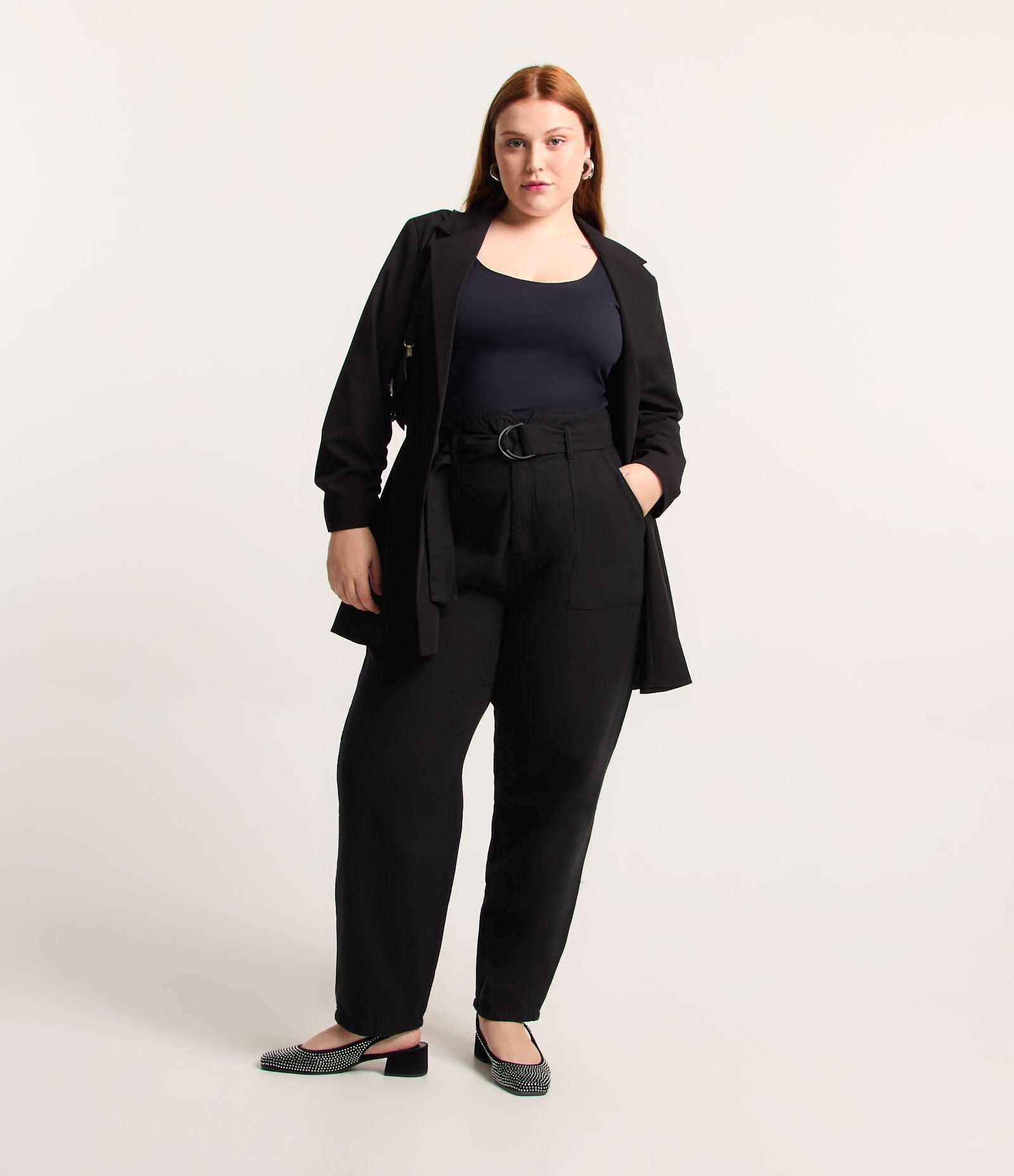 Pantalón Zanahoria de Lyocell con Cinturón - Curvas y Tallas Grandes - Negro