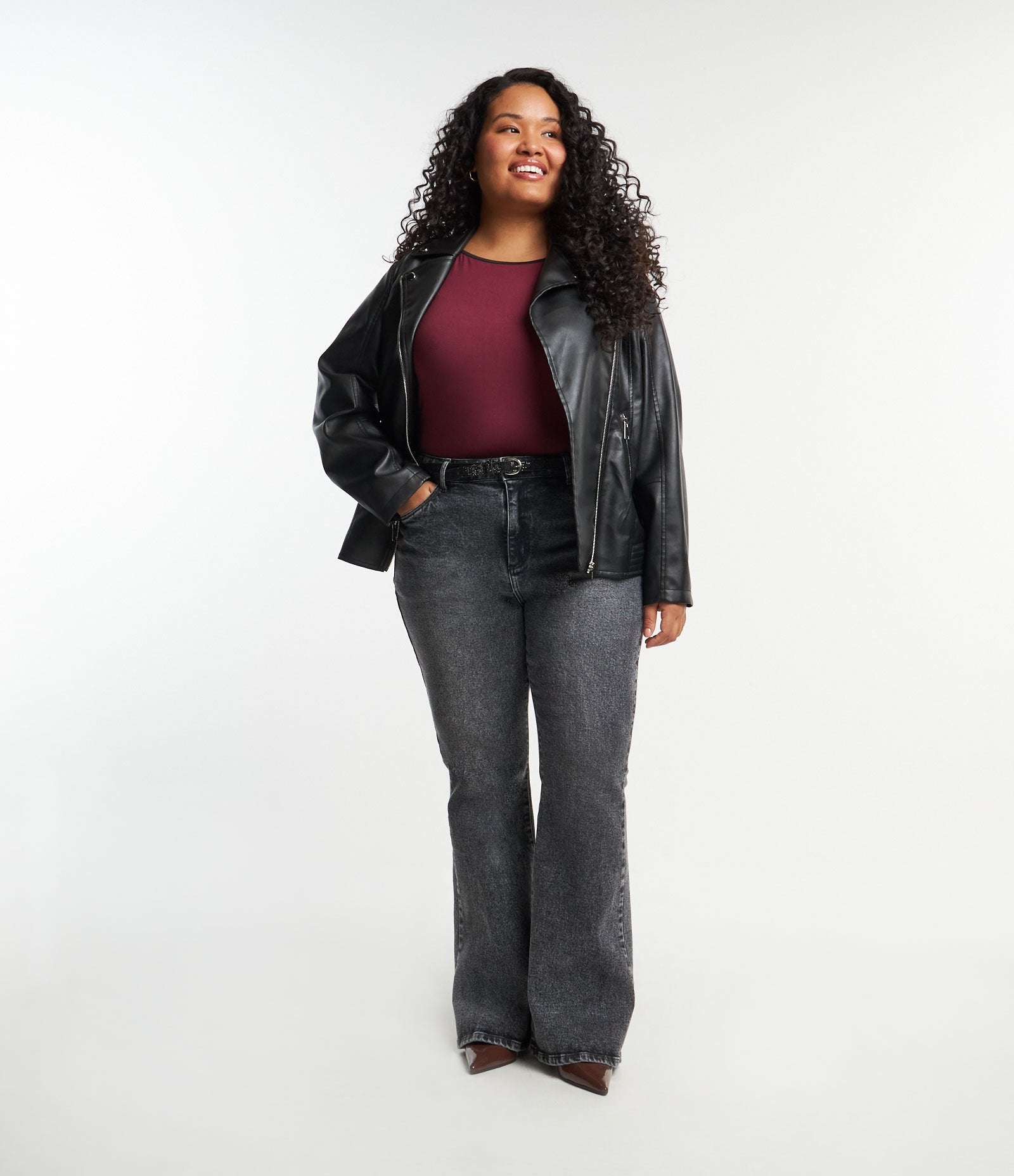 Vaqueros acampanados en negro jaspeado grisáceo - Tallas grandes y curvas