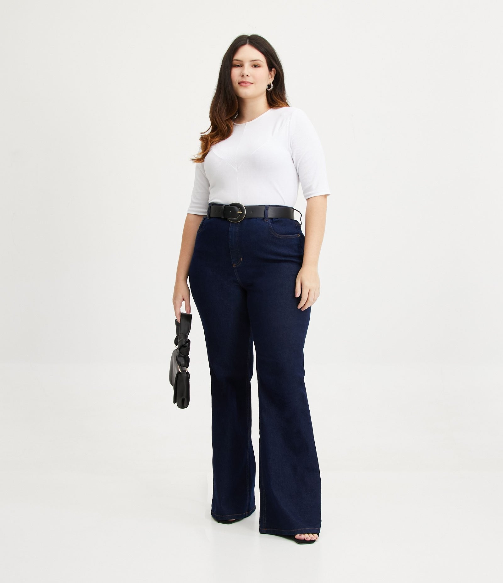 Los Vaqueros Flare con Botón Cubierto en Curve & Tallas Grandes Azul de Ashua Curve están confeccionados para celebrar tus curvas con estilo y confianza. Perfecta para cualquier ocasión, esta prenda combina a la perfección comodidad y elegancia en un diseño favorecedor.