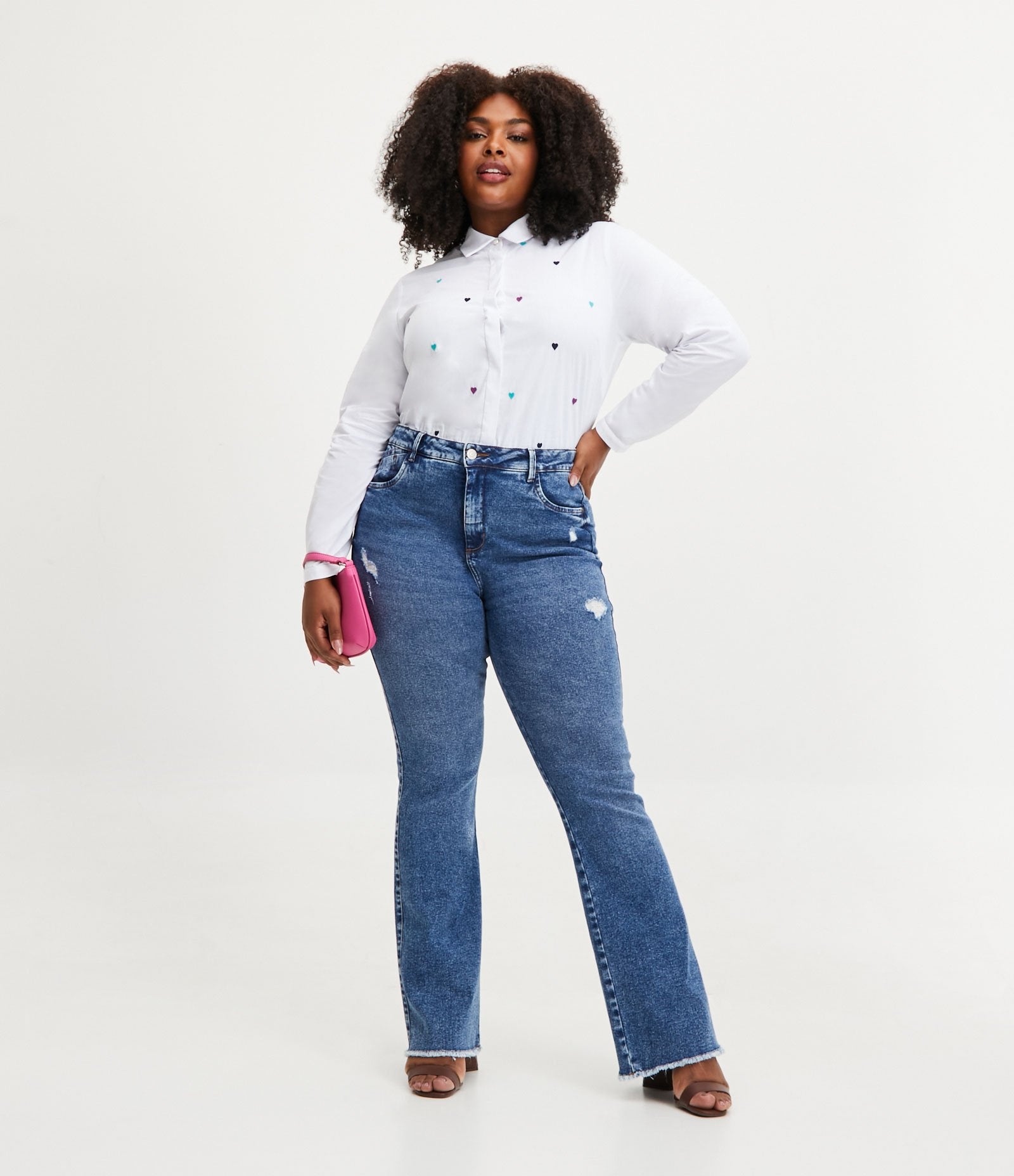 Los vaqueros Ashua Curve Flare Jeans en azul jaspeado con dobladillo deshilachado están confeccionados para abrazar y realzar tus curvas con estilo y confianza. Ideal para cualquier ocasión, esta prenda combina a la perfección comodidad y elegancia en un diseño favorecedor que realza tu silueta.