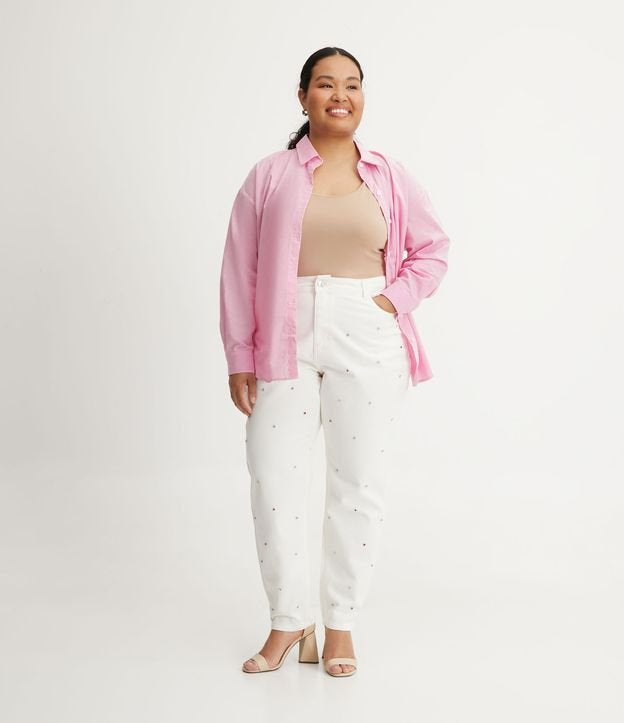 Los Vaqueros Blancos de Mamá en Sarga con Adornos de Pedrería de Ashua Curve están confeccionados para celebrar las curvas con estilo y confianza. Ideal para cualquier ocasión, esta prenda combina a la perfección comodidad y elegancia en un diseño favorecedor.
