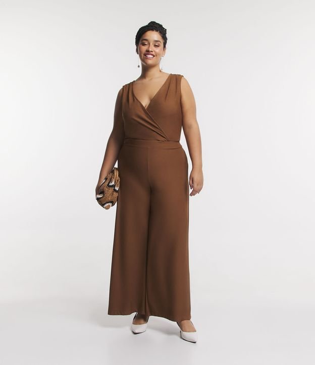 Pantalones de pata ancha de punto texturizado en marrón - Tallas grandes y curvas