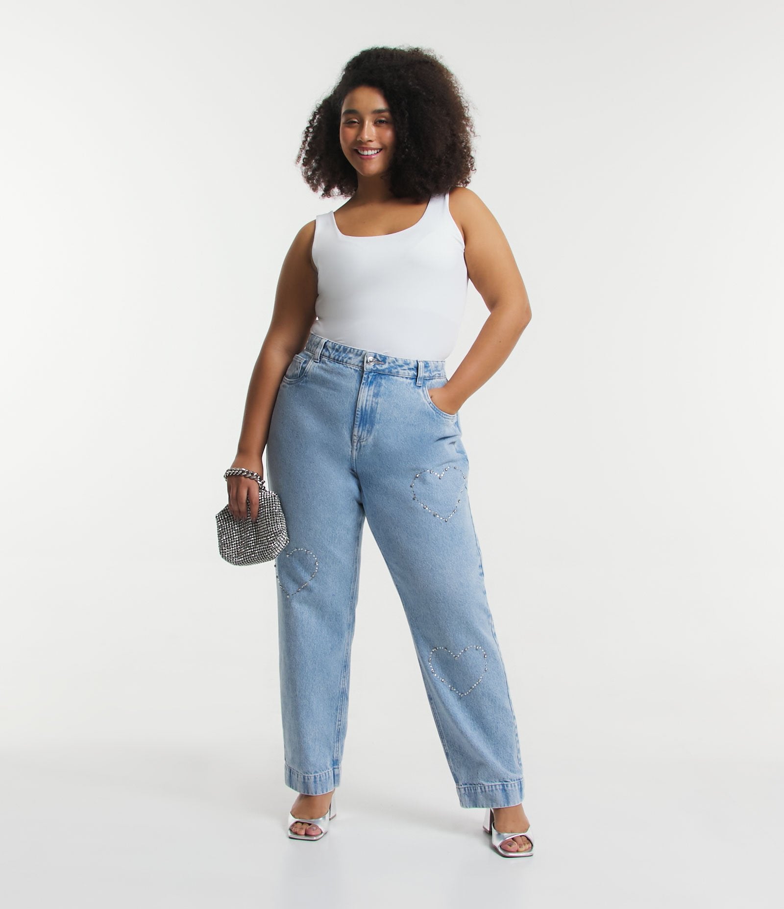 Los vaqueros de pierna recta con corazones de strass en Curve & Plus Size Azul de Ashua Curve están confeccionados para celebrar tus curvas con estilo y confianza. Perfecta para cualquier ocasión, esta prenda combina a la perfección comodidad y elegancia en un diseño favorecedor.