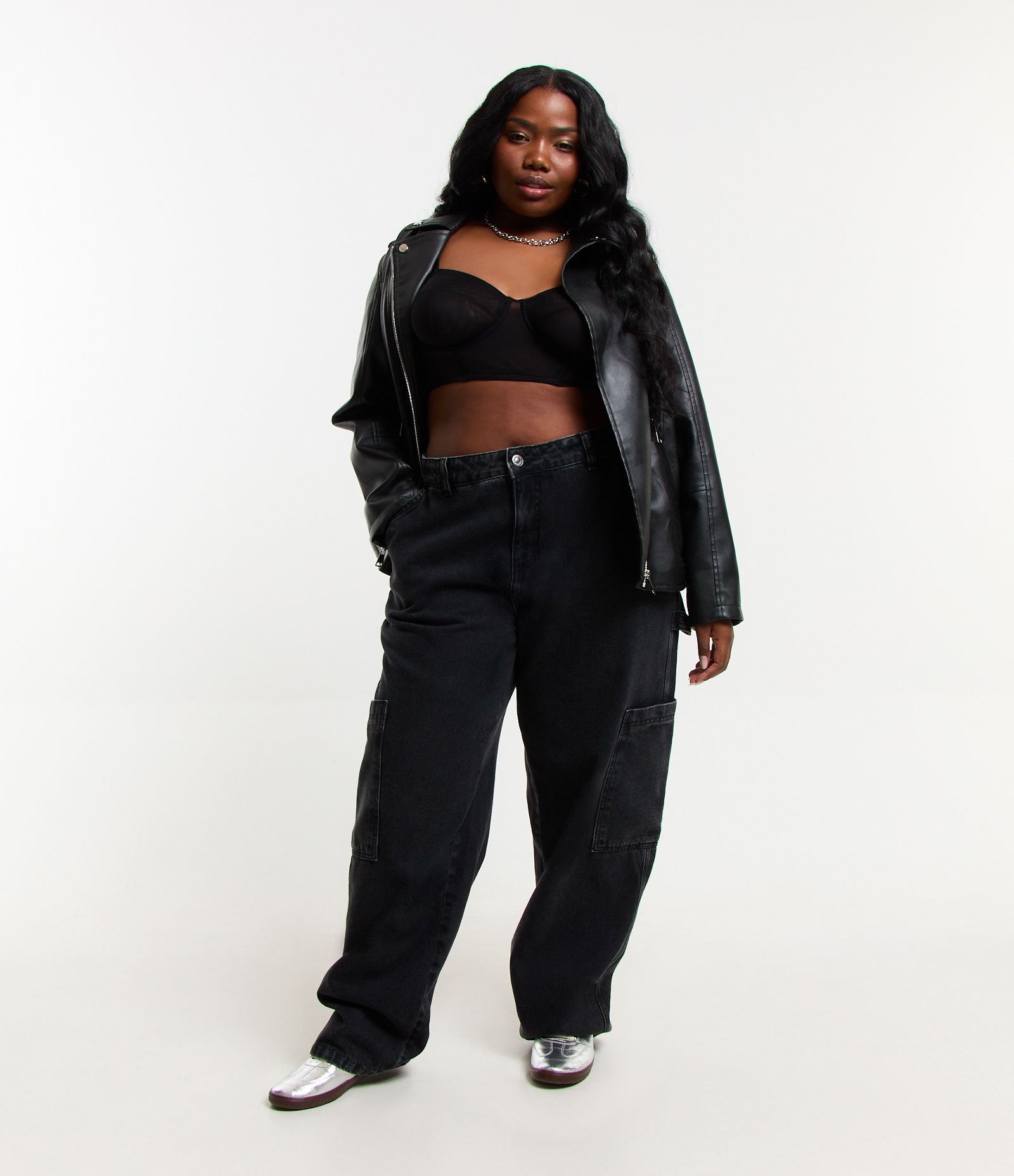 Vaqueros rectos negros desteñidos con bolsillos tipo cargo - Tallas grandes y curvas