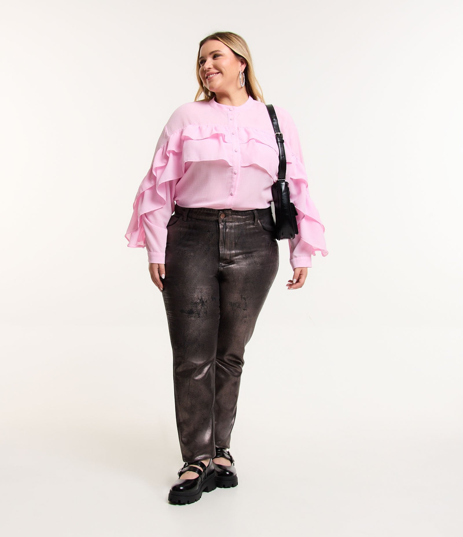 La Calca Reta Em Jeans Metalizado Curve & Plus Size Preto de Ashua Curve está confeccionada para celebrar las curvas con estilo y confianza. Ideal para cualquier ocasión, esta prenda combina a la perfección comodidad y elegancia en un diseño favorecedor.