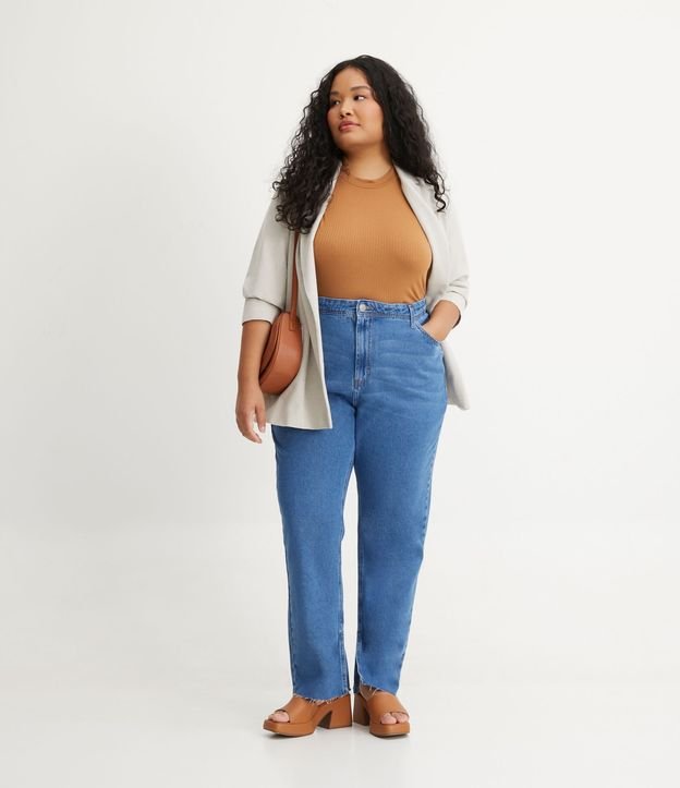 Vaqueros rectos con abertura interior en el bajo, Curvas y tallas grandes, Azul