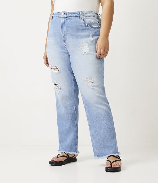 Vaqueros rectos desgastados con rotos, Curvas y tallas grandes, Azul