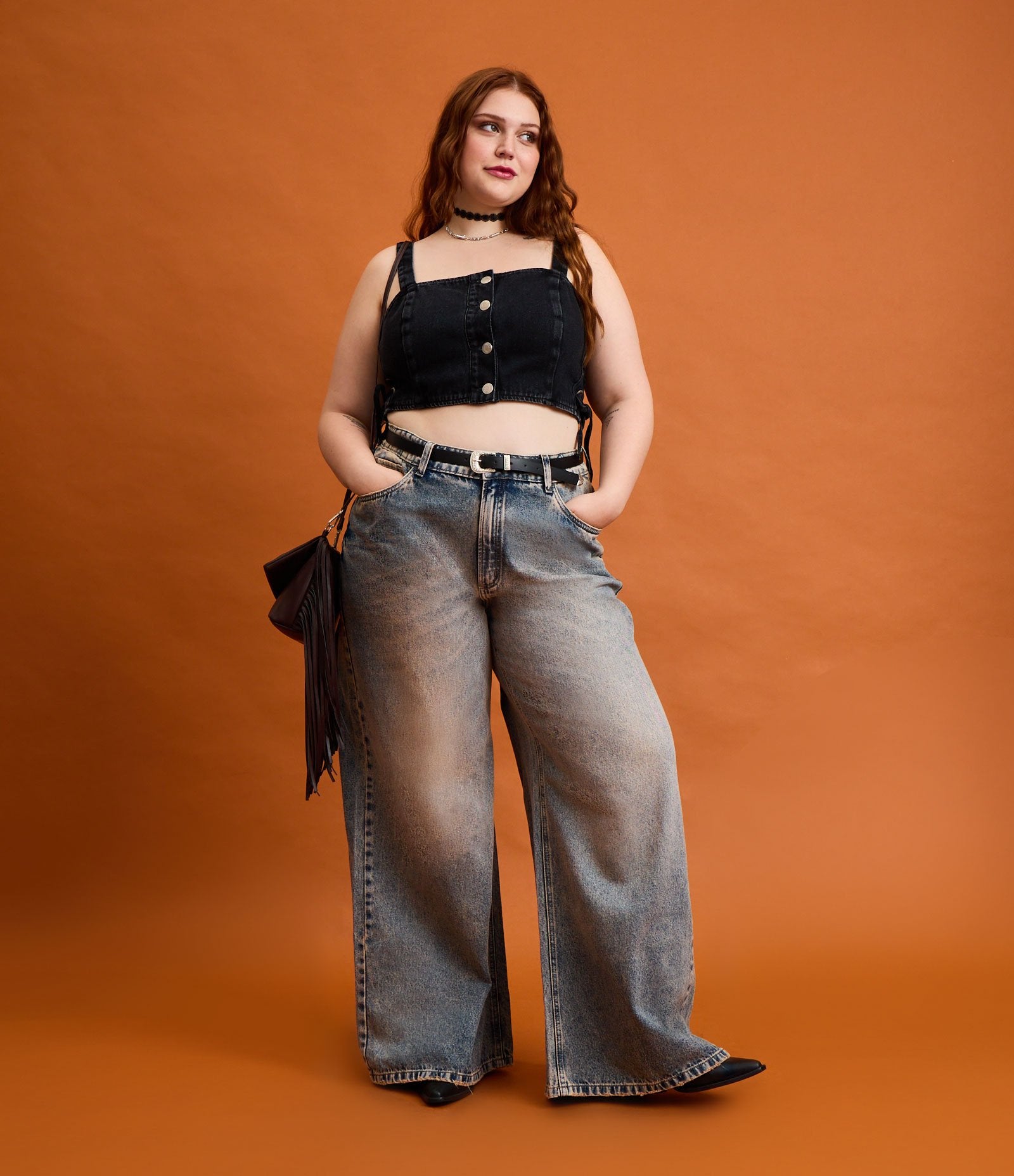 Los vaqueros de pierna ancha con lavado sucio en Curve & Plus Size Azul de Ashua Curve están confeccionados para celebrar tus curvas con estilo y confianza. Ideal para cualquier ocasión, esta prenda combina a la perfección comodidad y elegancia en un diseño favorecedor.