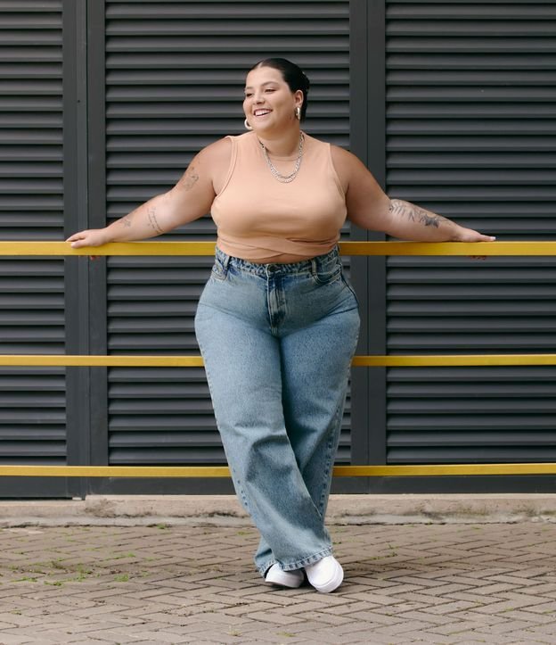 Los vaqueros de pierna ancha en azul lavado de Ashua Curve & Plus Size están confeccionados para celebrar tus curvas con estilo y confianza. Ideal para cualquier ocasión, esta prenda combina a la perfección comodidad y elegancia en un diseño favorecedor.