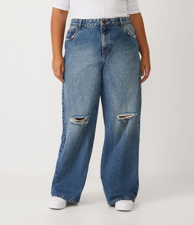 Vaqueros de pierna ancha con rotos en las rodillas - Curvas y tallas grandes, Azul