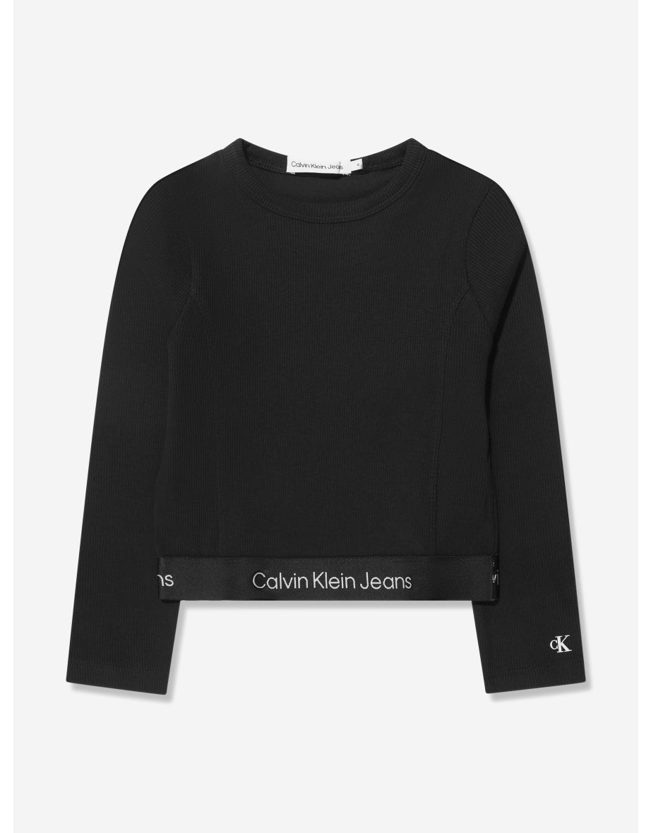 La camiseta de manga larga Rib Tape de niña en negro de Calvin Klein Jeans es la opción ideal para un estilo informal sin esfuerzo y para el día a día.