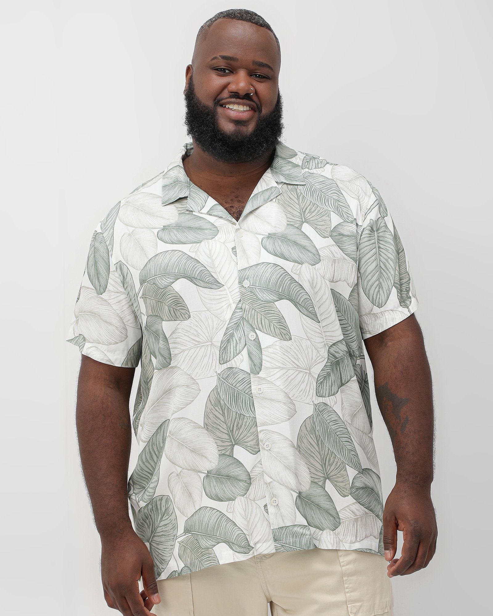 La camisa blanca con estampado de hojas de talla grande para hombre | Allman By Riachuelo by RCHO PLUS está confeccionada por expertos para aumentar tu confianza y proporcionarte la máxima comodidad. Esta camisa está diseñada con una estética moderna y elegante, lo que la convierte en la opción perfecta para llevar a diario.