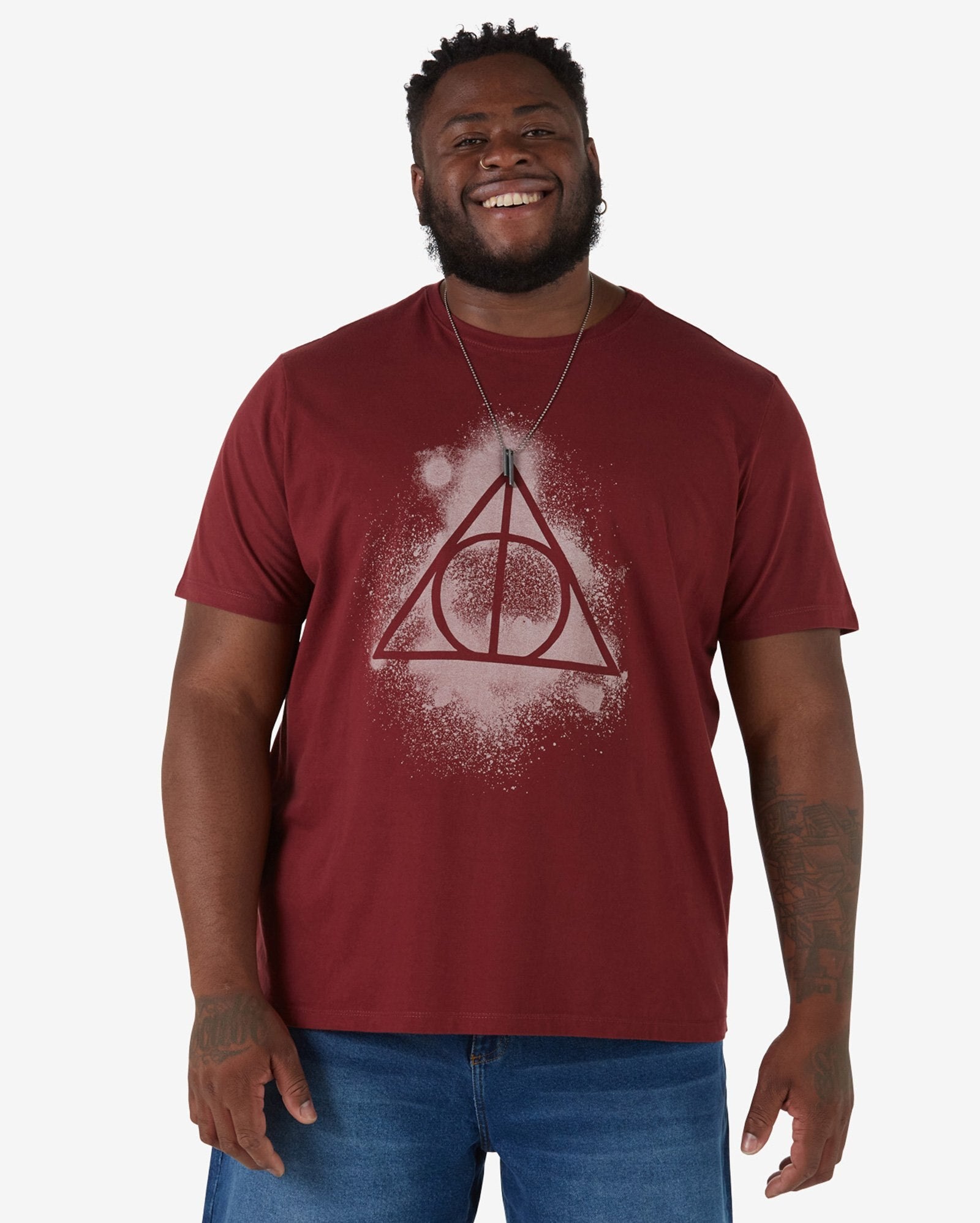 Camiseta Manga Corta Hombre Tallas Grandes Rojo Oscuro Harry Potter Reliquias de la Muerte