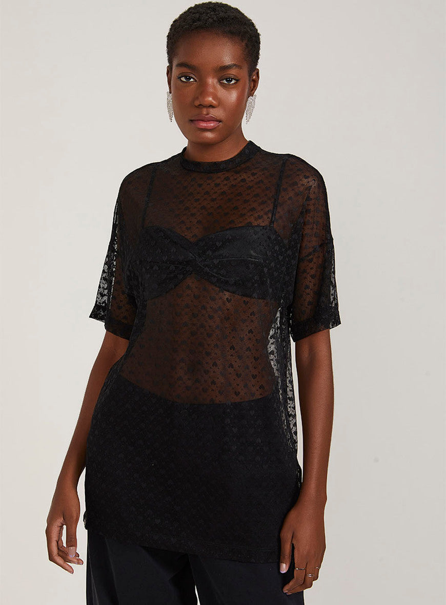 Camiseta de tul. Confeccionada pensando en la comodidad, esta prenda presenta materiales de alta calidad y un diseño contemporáneo. Ideal para salidas informales y elegancia cotidiana.