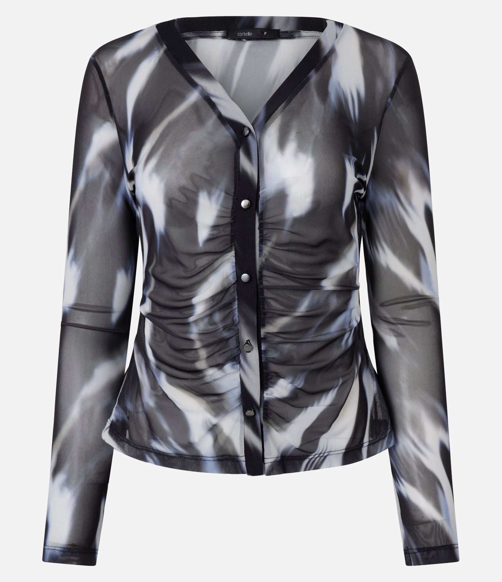 Camisa de Tul con Estampado Abstracto Blanco/Negro