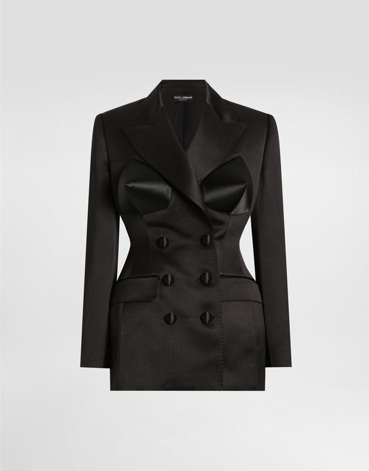 La chaqueta duquesa de doble botonadura Dolce&Gabbana, con sus características copas cónicas, es una opción ideal para crear looks chic sin esfuerzo y elevar tu vestuario diario.