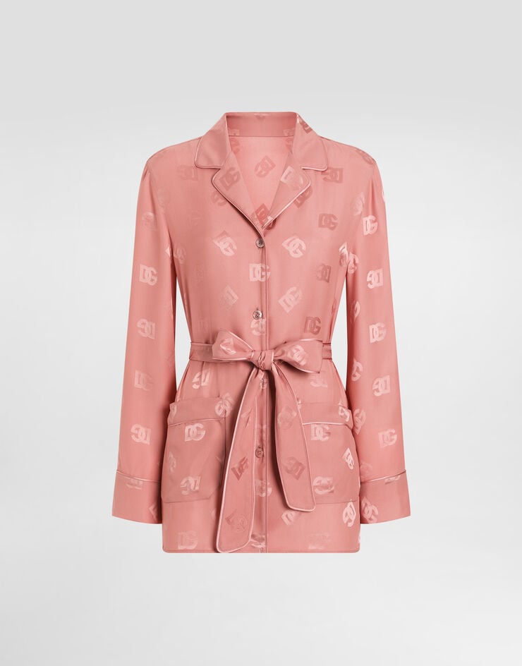 Camisa de pijama de jacquard de seda de manga larga con logotipo DG
