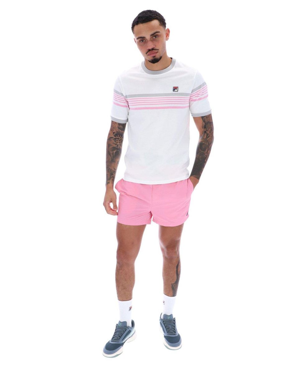 La camiseta James Yarn Dye Stripe Tee in White High Rise Prism Pink de Fila es la opción ideal para conjuntos informales y ropa de diario.