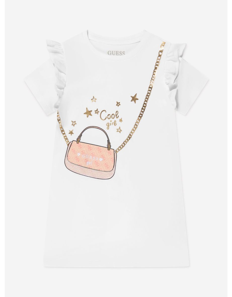 El Vestido de punto con estampado de bolsos para niña en blanco de Guess es la elección ideal para un estilo sin esfuerzo y para llevar a diario.