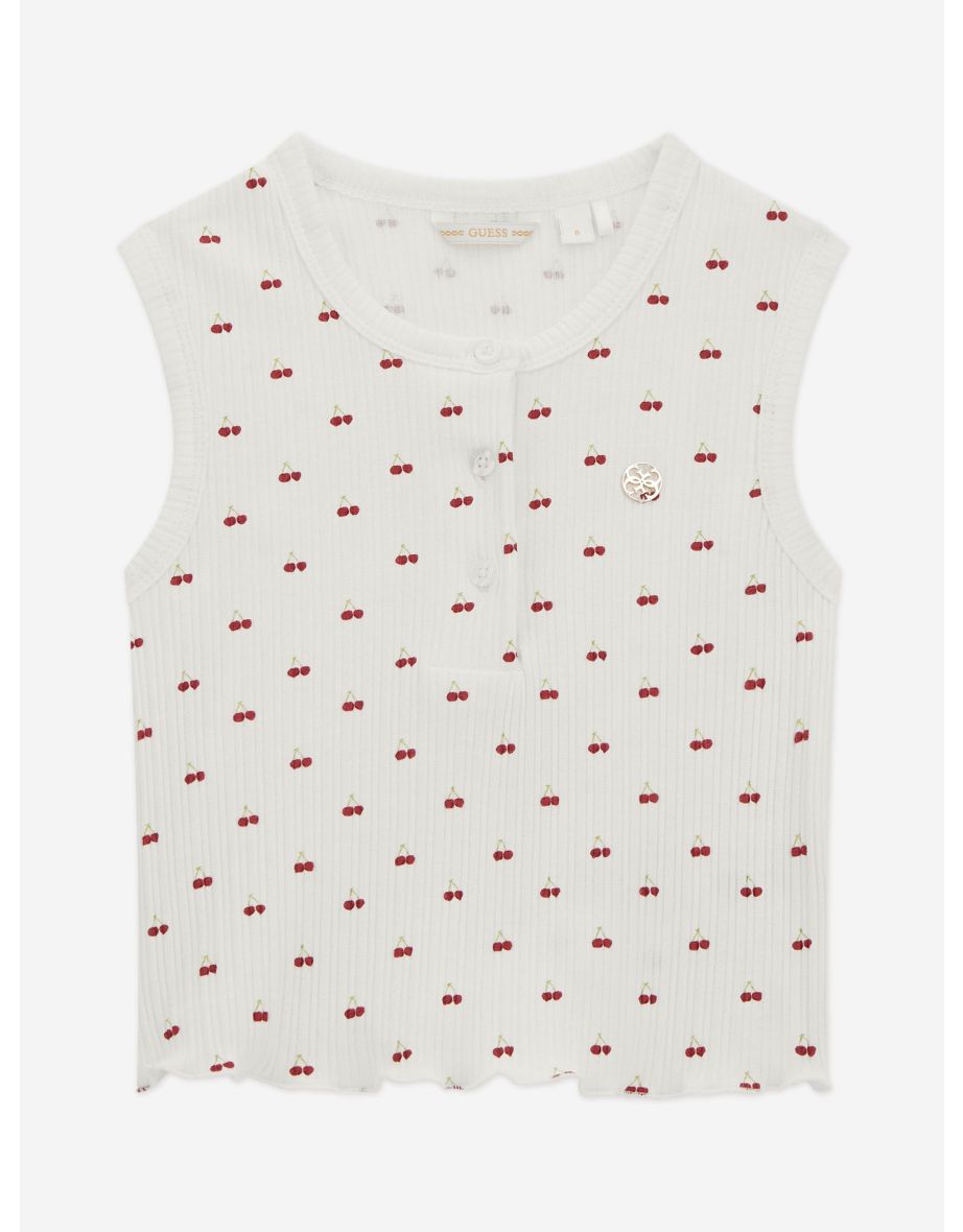 El top sin mangas Cherry de niña en blanco de Guess es la elección ideal para conjuntos informales y ropa de diario.