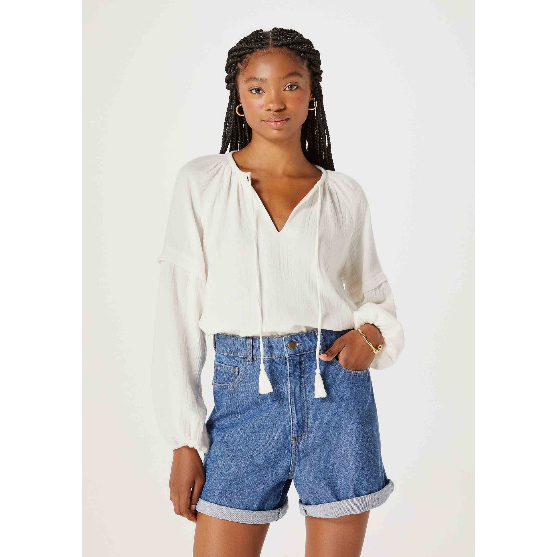 La Blusa Puff de Manga Larga para Mujer en Blanco roto de Hering es el complemento perfecto para tu armario, tanto para looks esenciales como para el día a día.