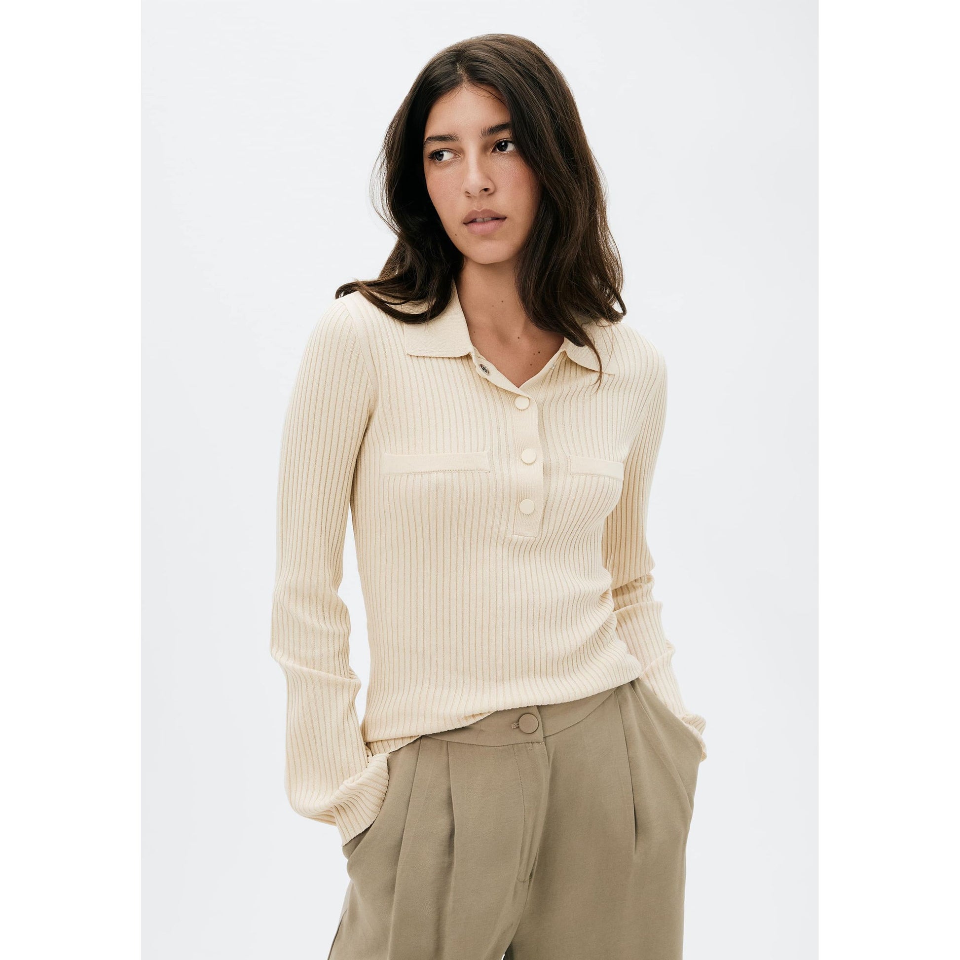 El Polo de manga larga acanalado para mujer en color crema de Hering es la elección perfecta para crear looks esenciales y para el día a día.