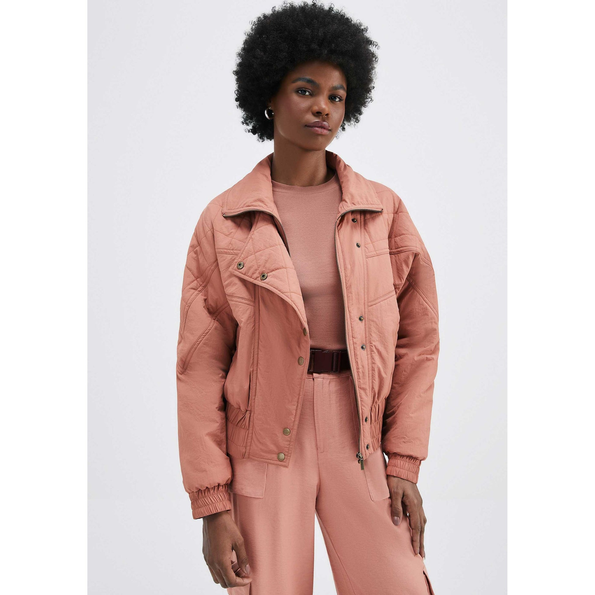 La Chaqueta Puffer de Cuello Alto para Mujer en Marsala de Hering está confeccionada con nailon resistente, lo que la convierte en una opción ideal tanto para looks esenciales como para el día a día.