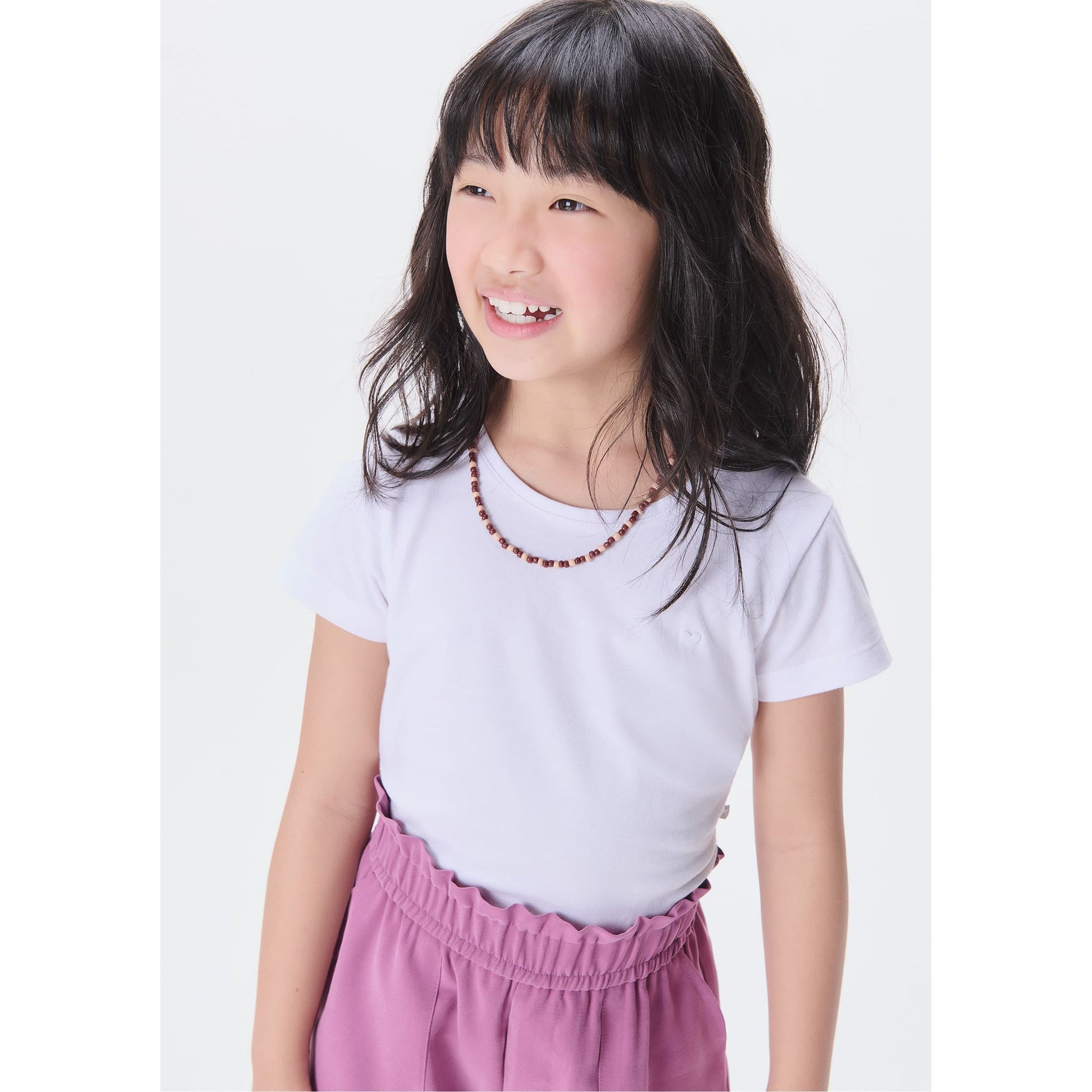 Camiseta básica de manga corta Slim-Fit para niña con bordado de corazones