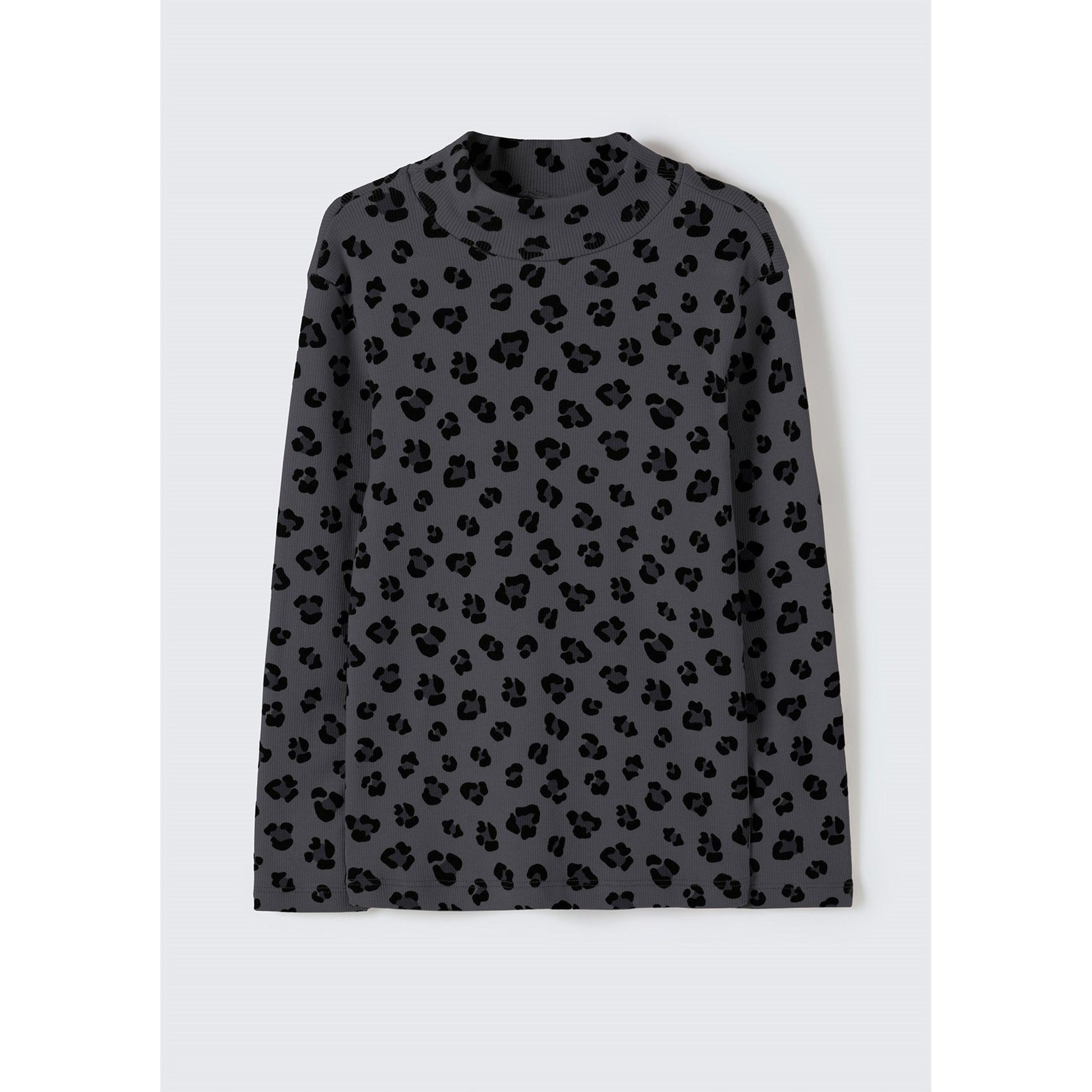 Camiseta de cuello alto acanalada de manga larga para niña con estampado de animales