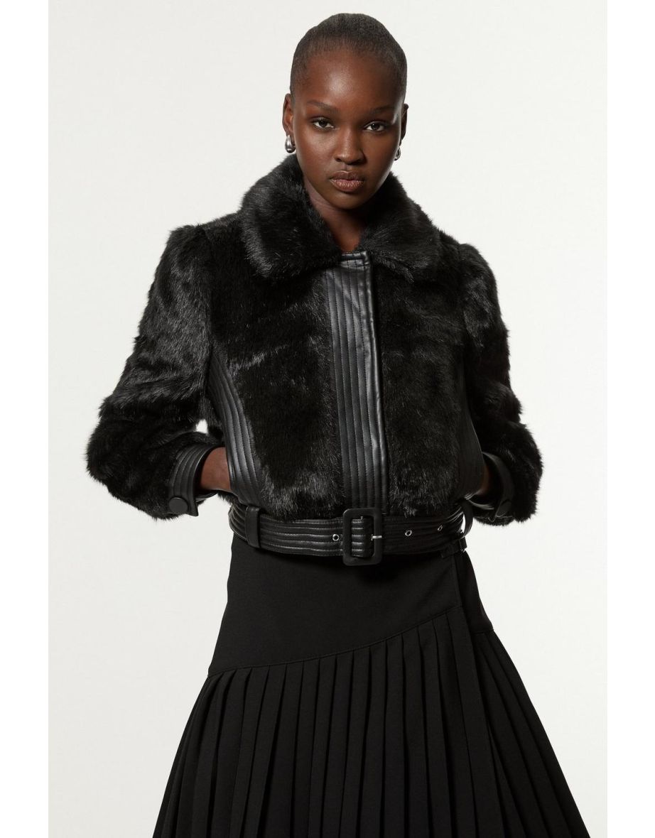 La Chaqueta corta con cinturón y paneles de PU de piel sintética Petite de Karen Millen es el complemento definitivo para tu armario, tanto para tus looks esenciales como para tu elegancia diaria.