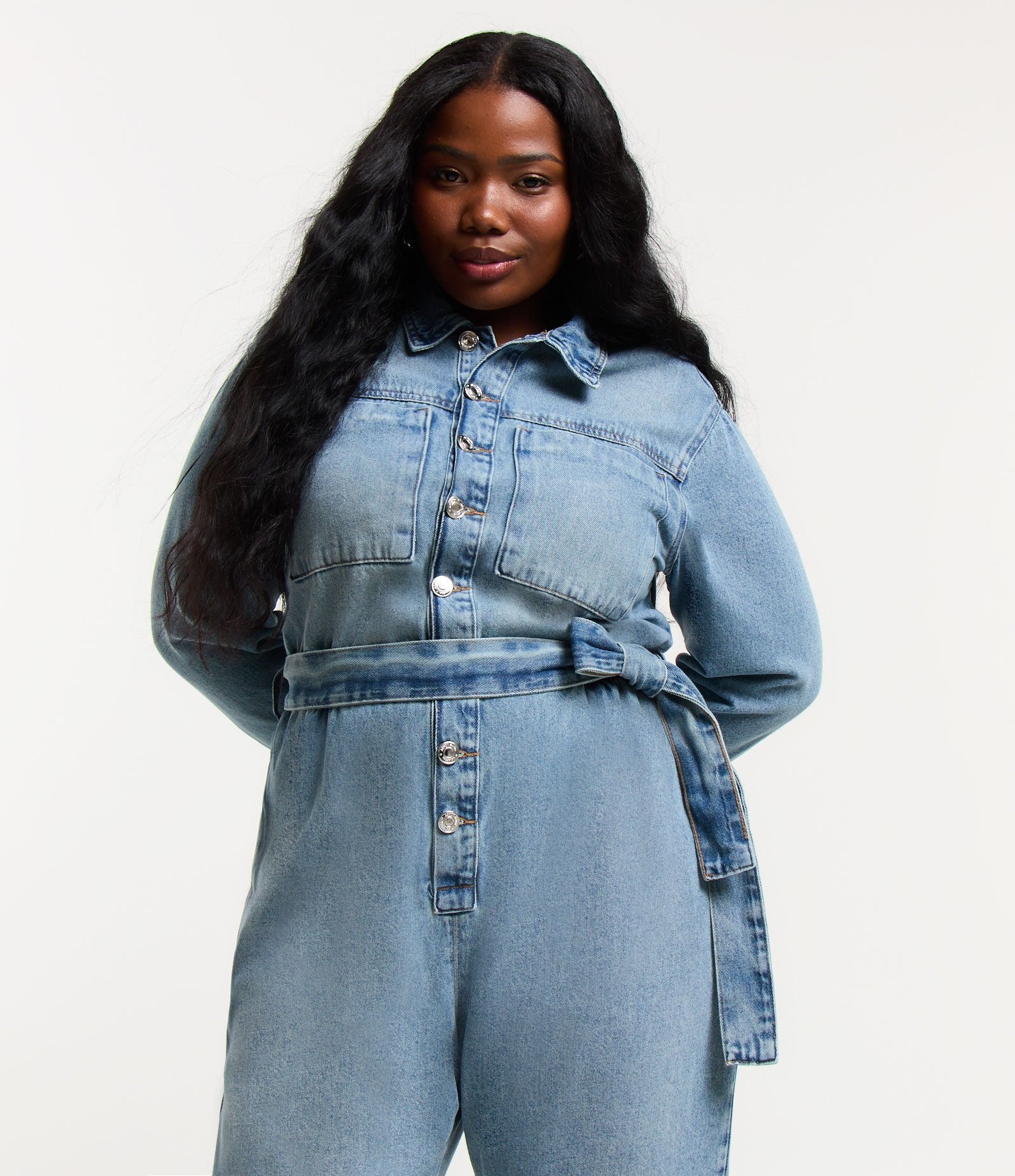 El mono vaquero largo con mangas largas y cintura con cinturón en Curve & Plus Size Azul de Ashua Curve está confeccionado para celebrar las curvas con estilo y confianza. Ideal para cualquier ocasión, esta prenda combina a la perfección comodidad y elegancia en un diseño favorecedor.