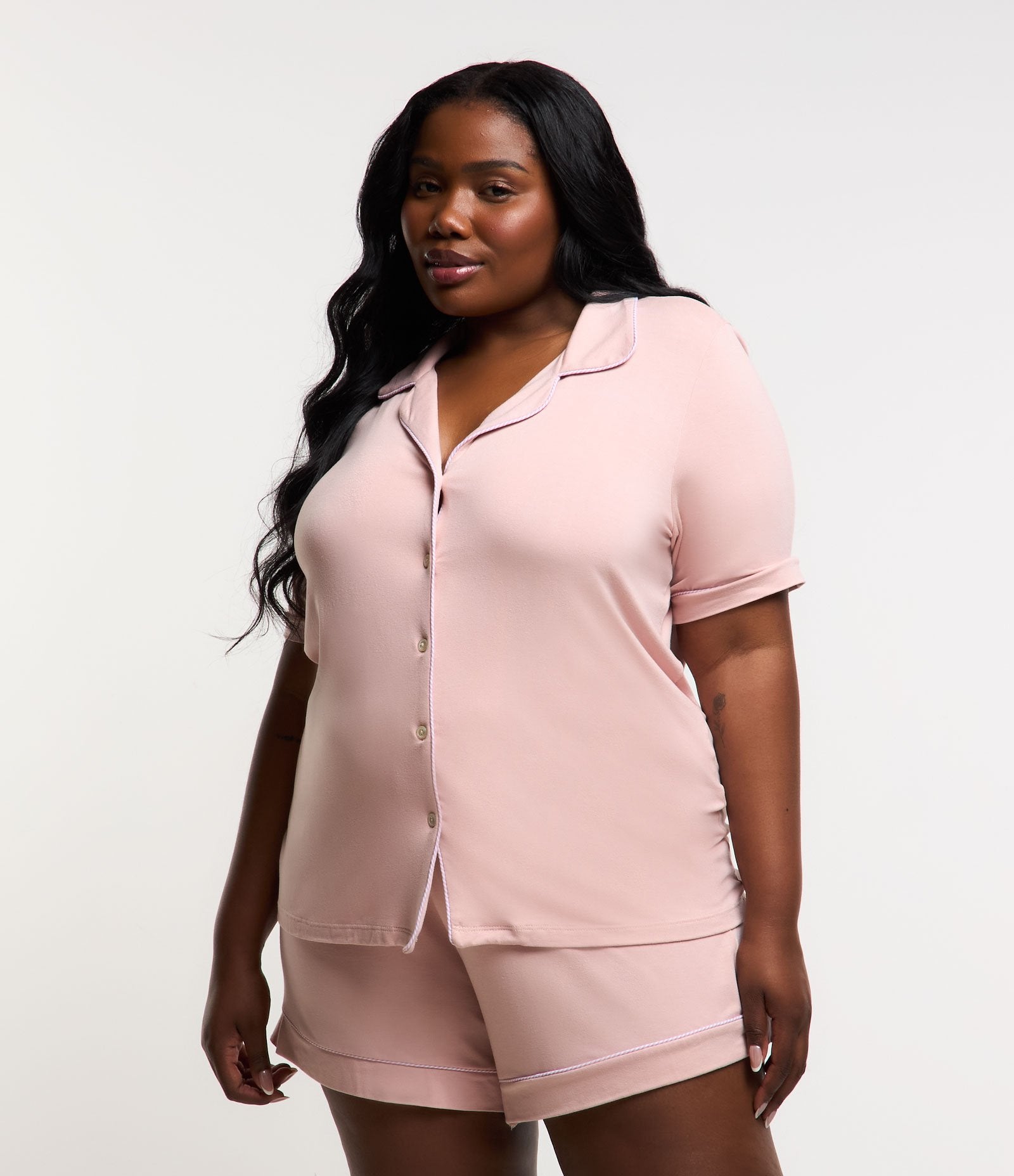 El Conjunto de Pijama Americano con Ribete de Rayas Rosa en Curve & Tallas Grandes de Ashua Curve está confeccionado para celebrar tus curvas con estilo y confianza. Ideal para cualquier ocasión, esta prenda combina a la perfección comodidad y elegancia en un diseño favorecedor.