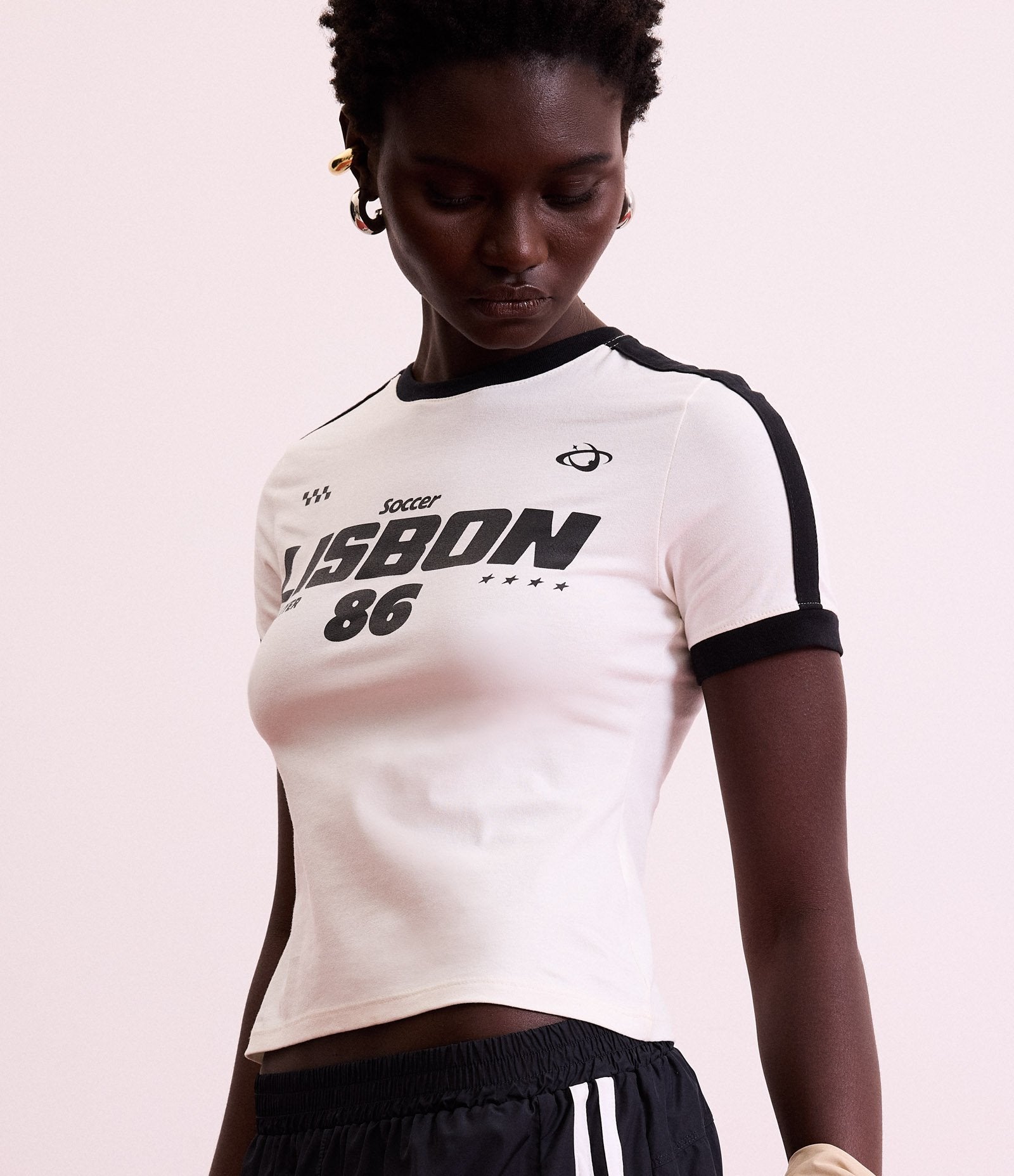 Camiseta blanca de algodón para bebé con estampado Lisboa 86