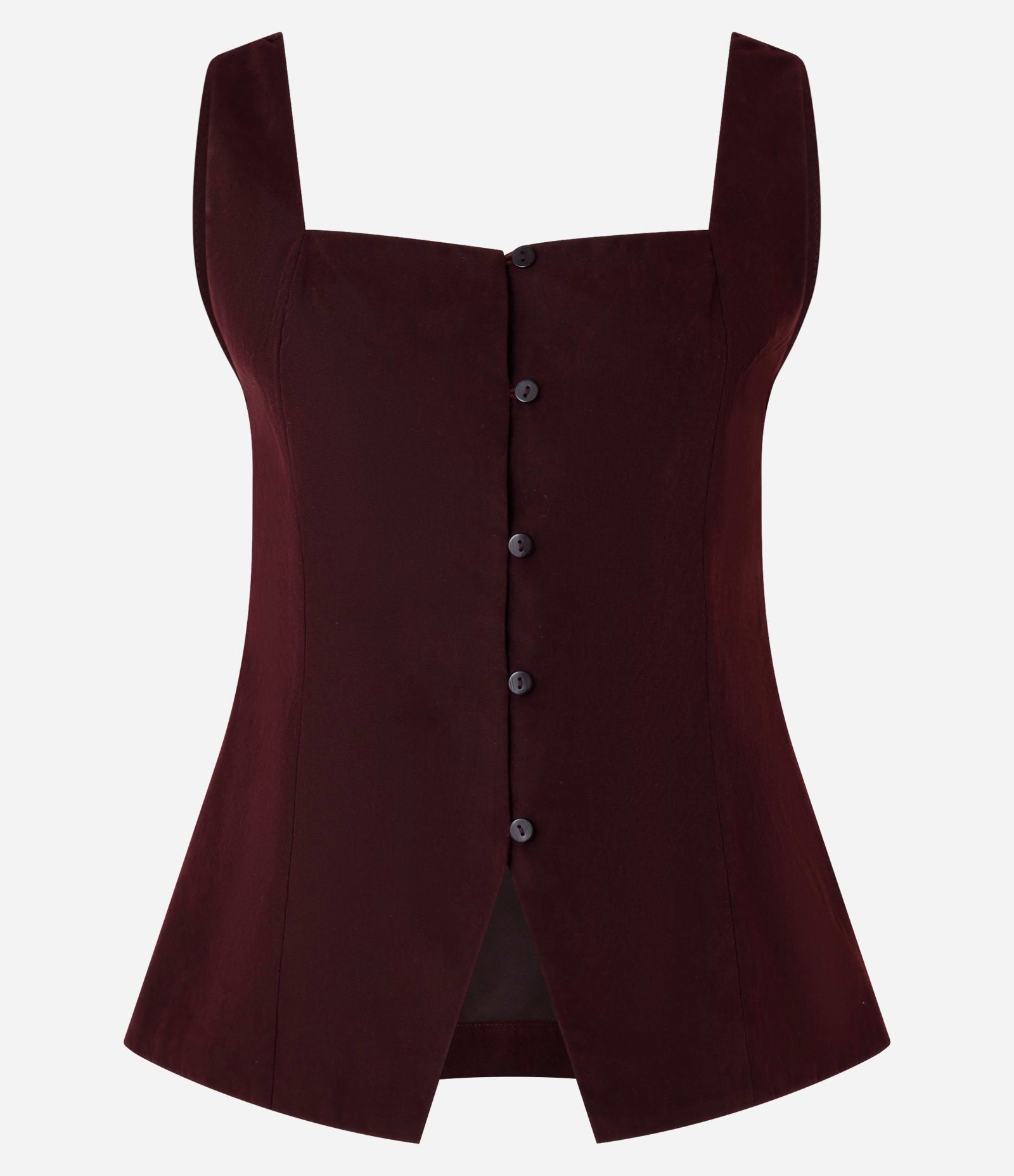 Blusa Chaleco Cupro Marrón con Botones Delanteros