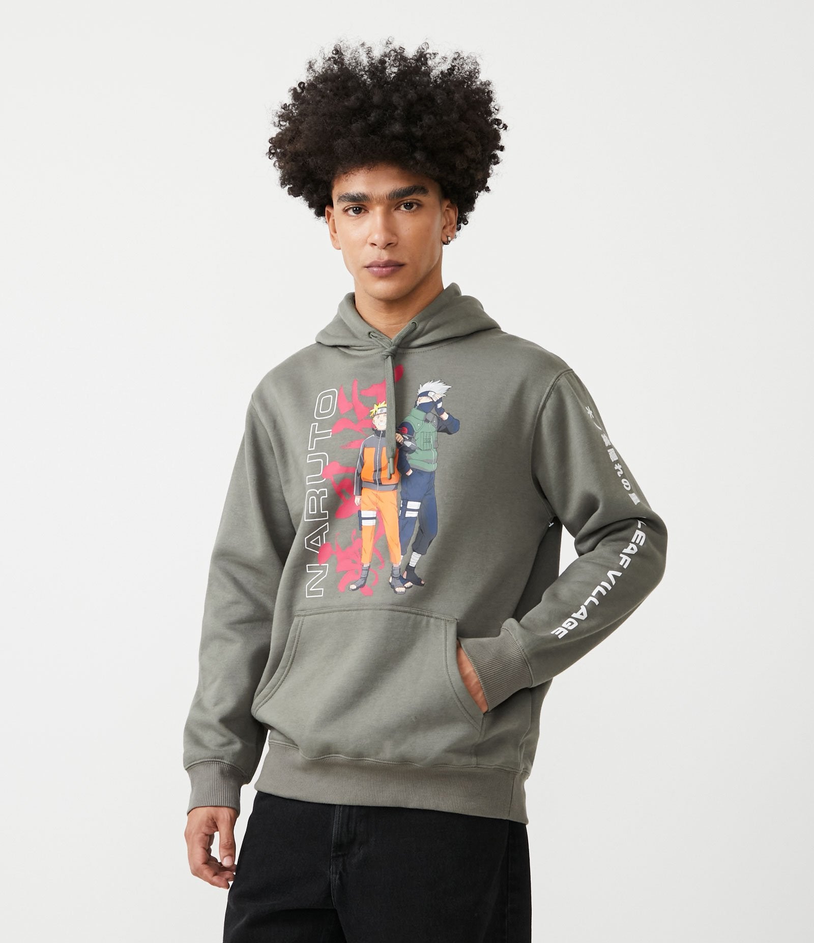 Sudadera con capucha verde de Naruto con cómodo forro polar y diseño estampado