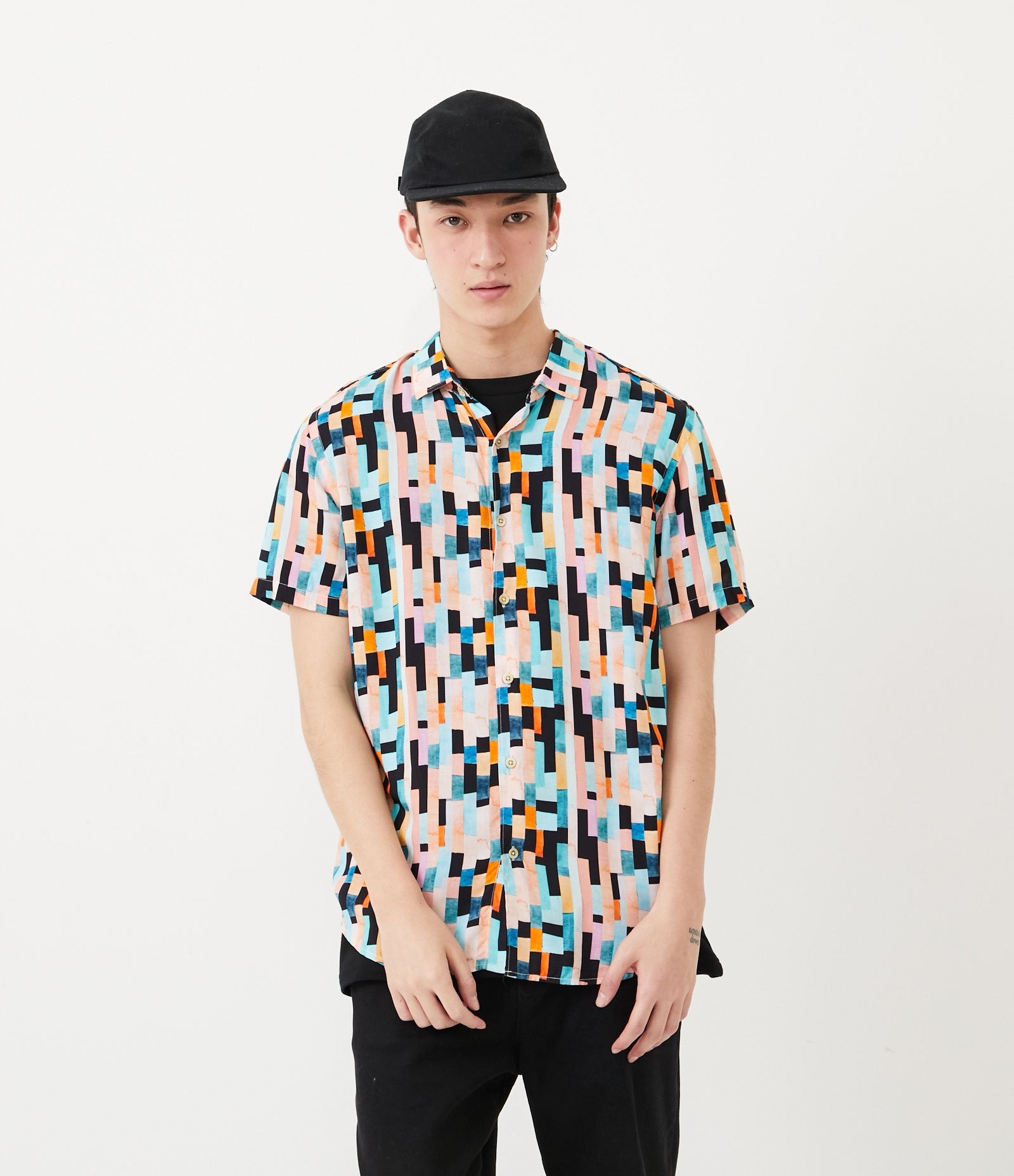Camisa de manga corta de viscosa con estampado pixelado negro