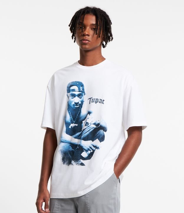 Camiseta blanca de algodón con estampado de Tupac