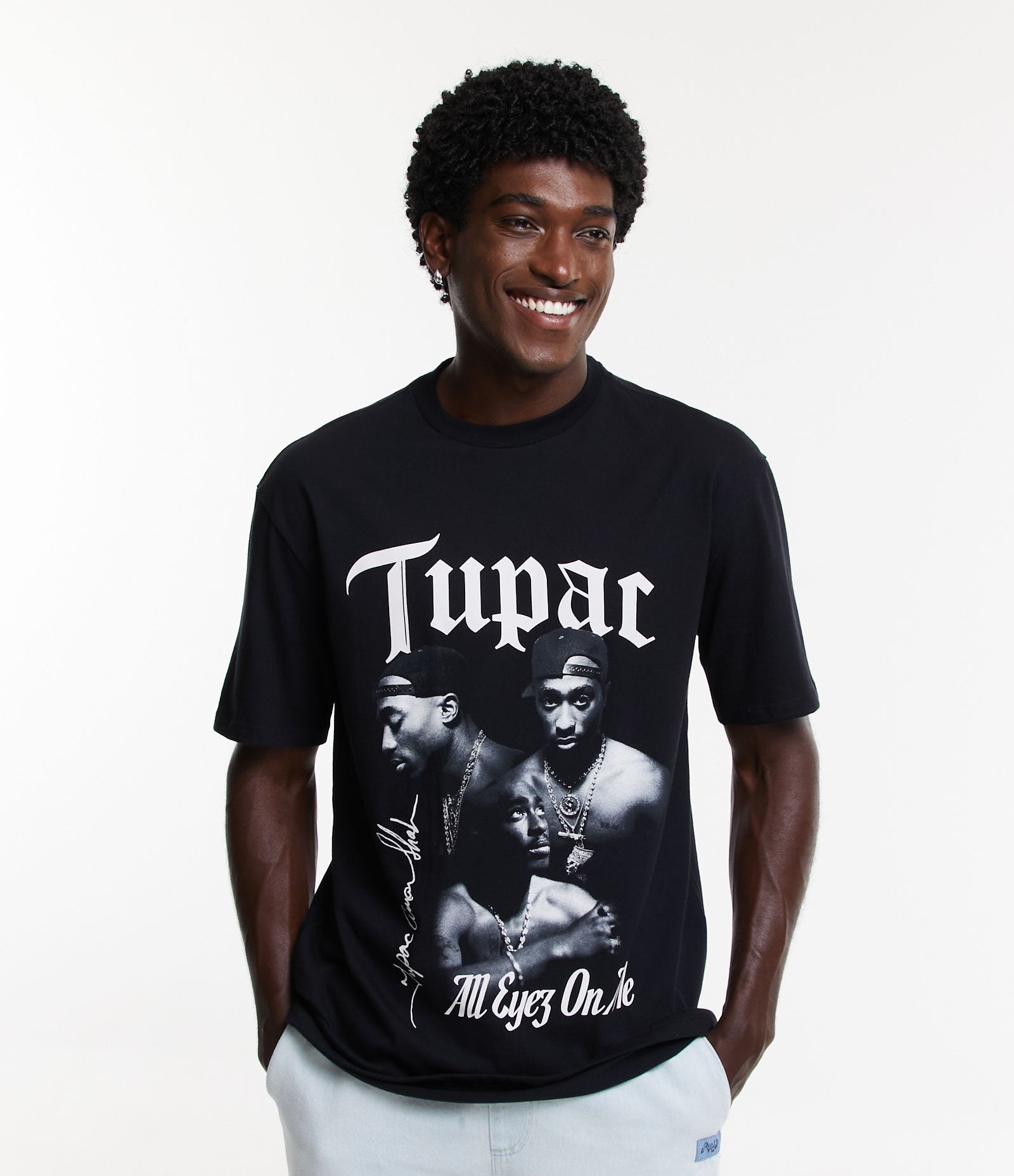 Camiseta negra con estampado de Tupac en tejido de punto suave