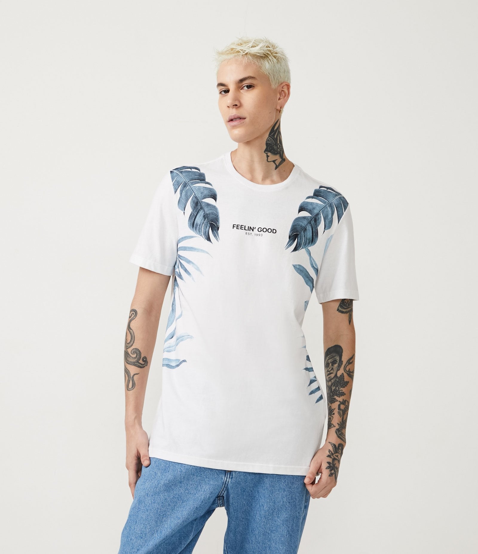 Camiseta regular fit de algodón con estampado de hojas y letras blancas