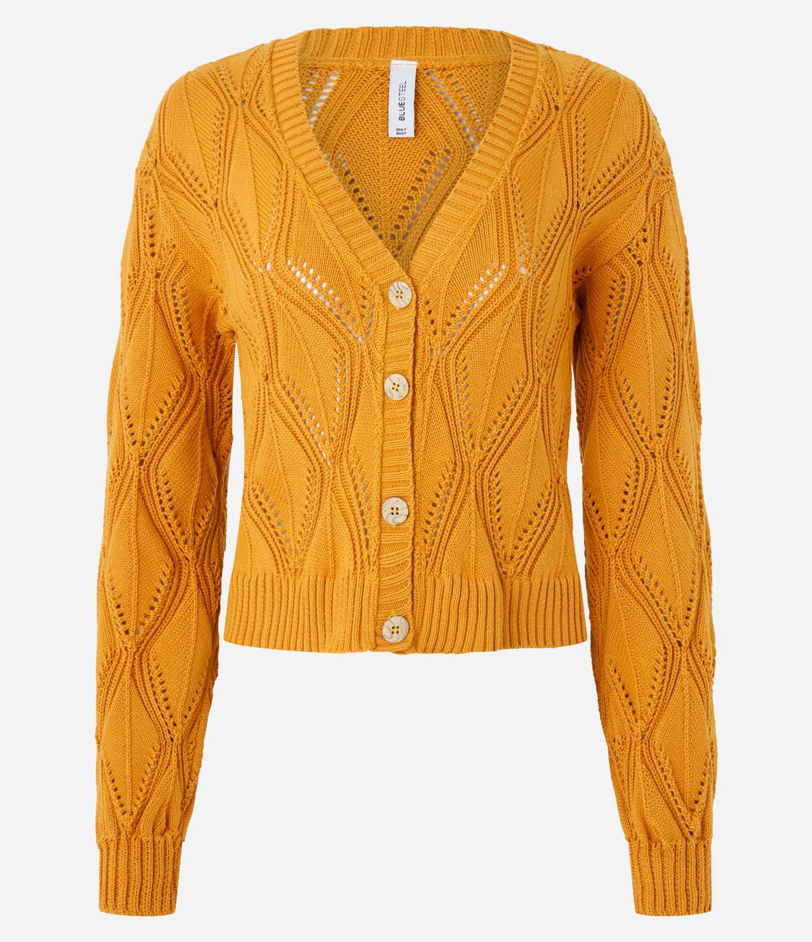 Chaqueta corta de punto con pespuntes únicos en amarillo