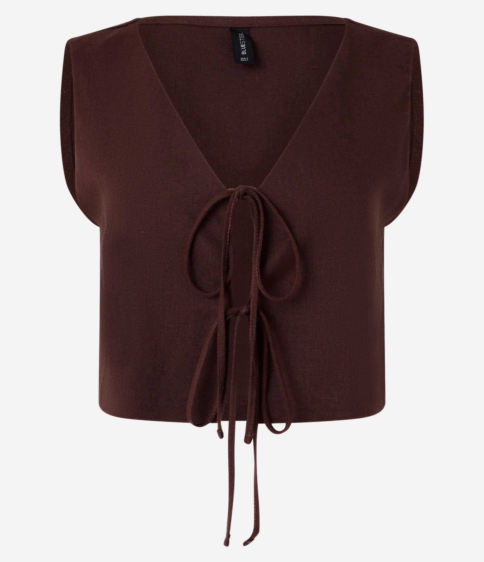 Chaleco Marrón de Viscosa con Lazo Delantero
