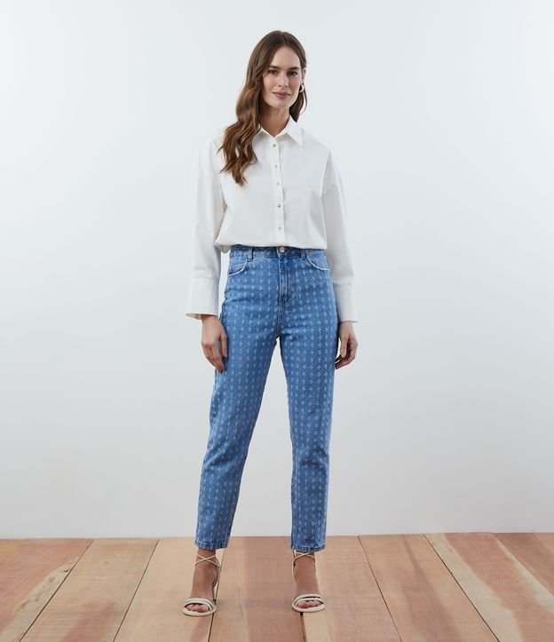 Vaqueros de cintura alta con detalles texturizados en azul