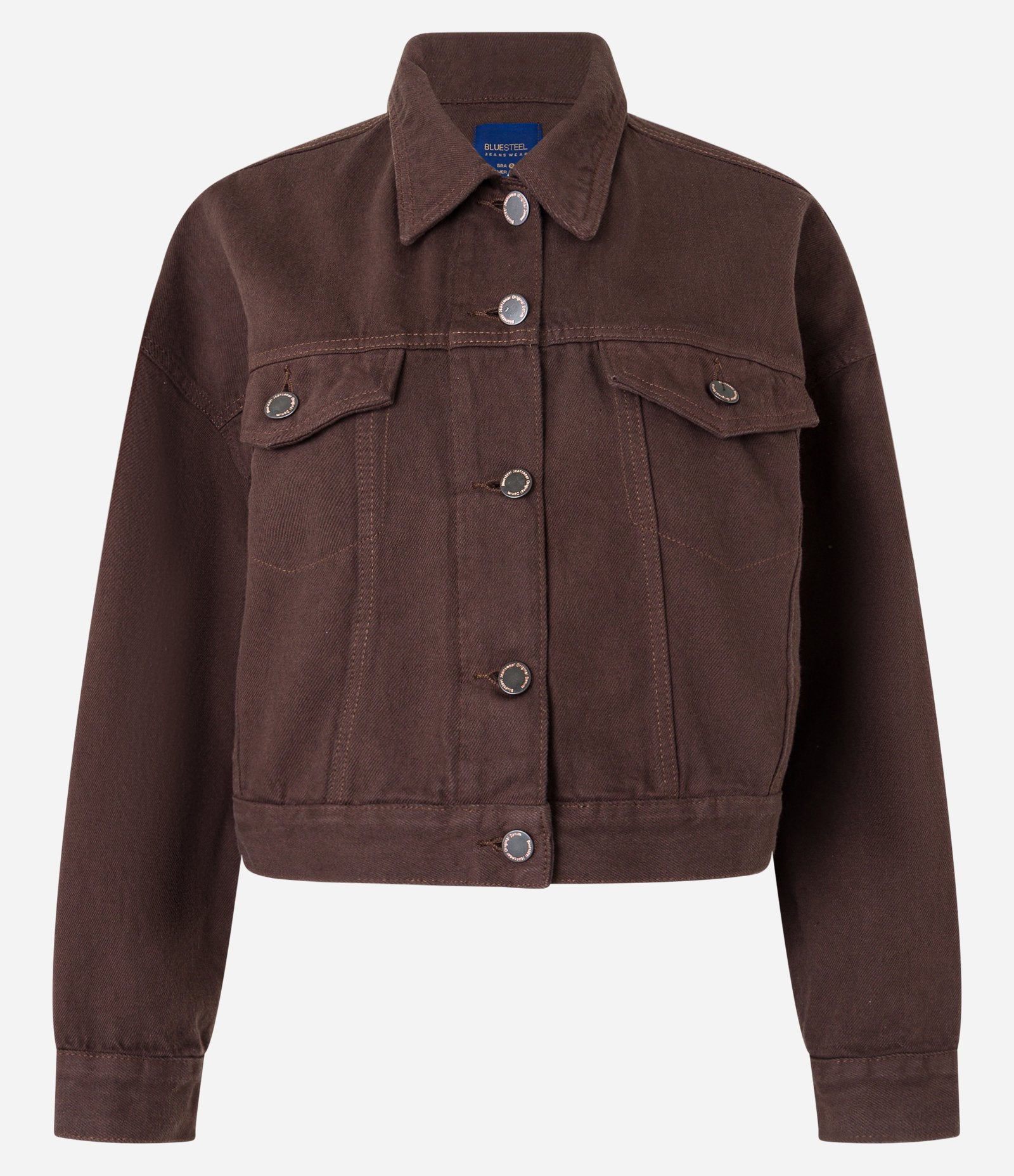 Chaqueta Regular de Sarga con Bolsillos y Pliegues en el Dobladillo Marrón